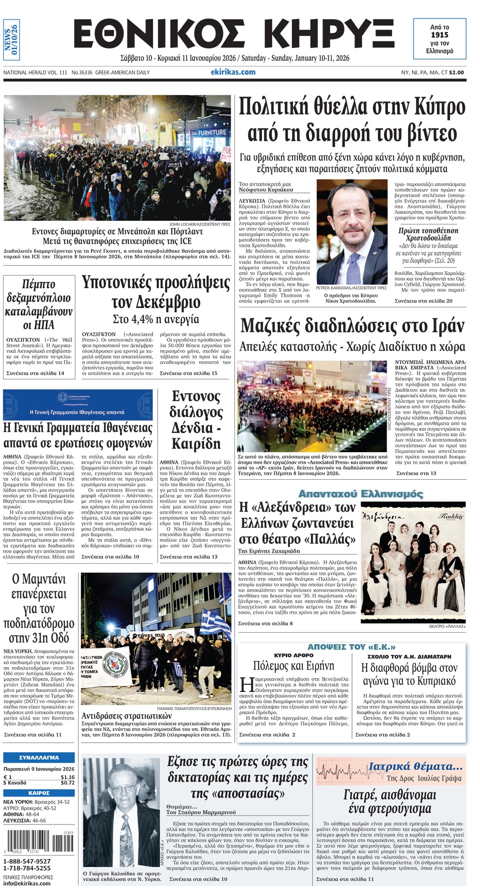 ΕΘΝΙΚΟΣ ΚΗΡΥΞ - 10 Ιανουαρίου 2026