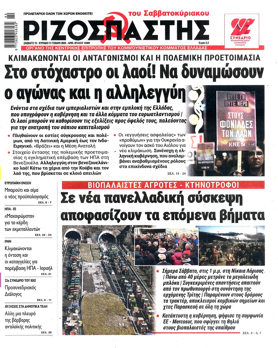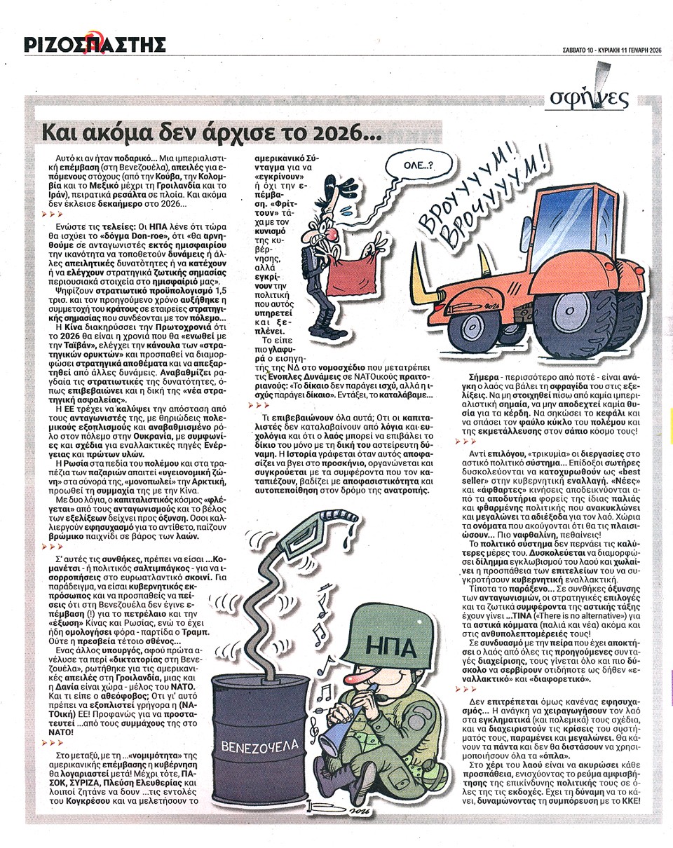 ΡΙΖΟΣΠΑΣΤΗΣ ΤΗΣ ΚΥΡΙΑΚΗΣ - 10 Ιανουαρίου 2026