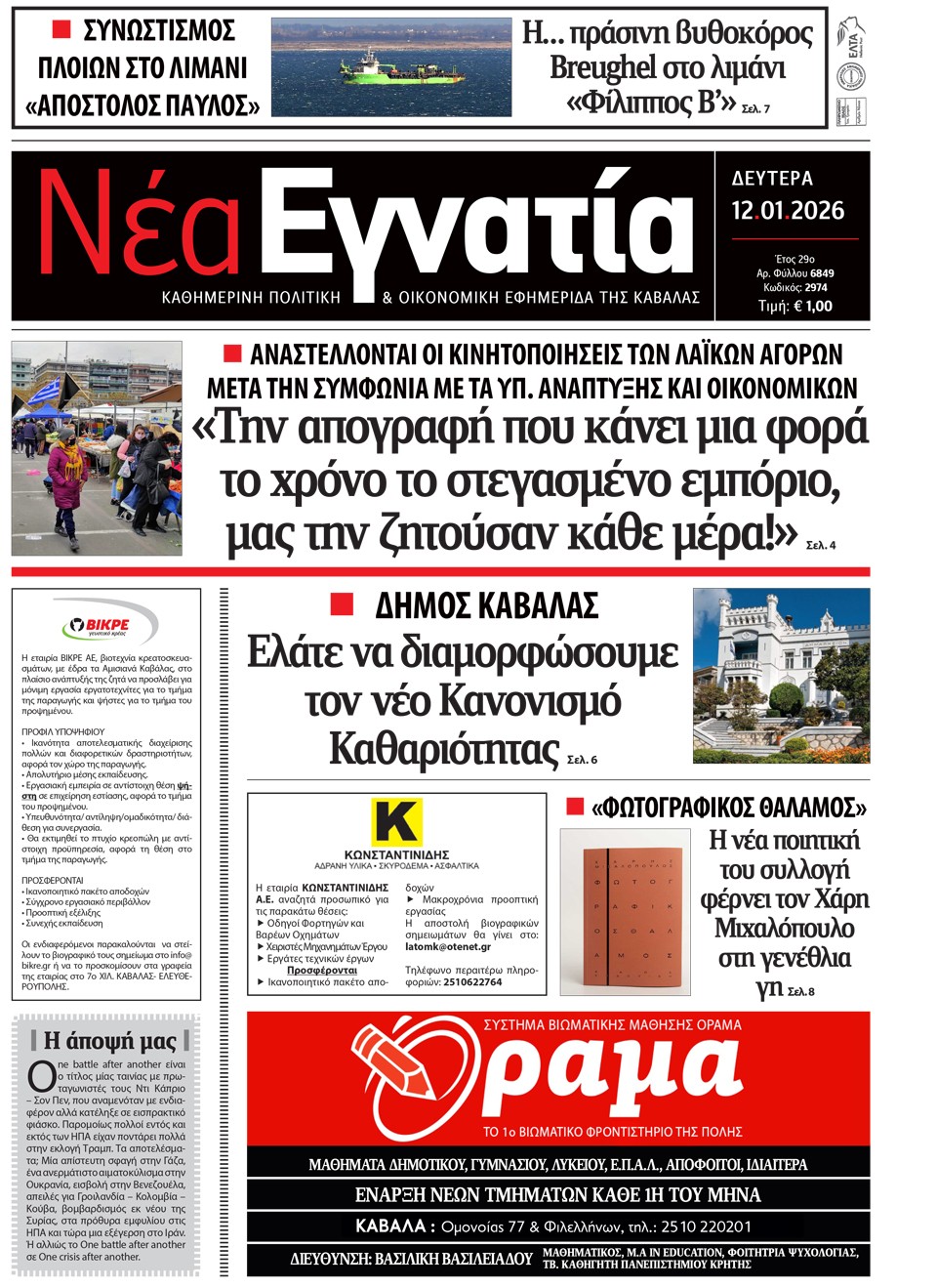 ΝΕΑ ΕΓΝΑΤΙΑ - 12 Ιανουαρίου 2026