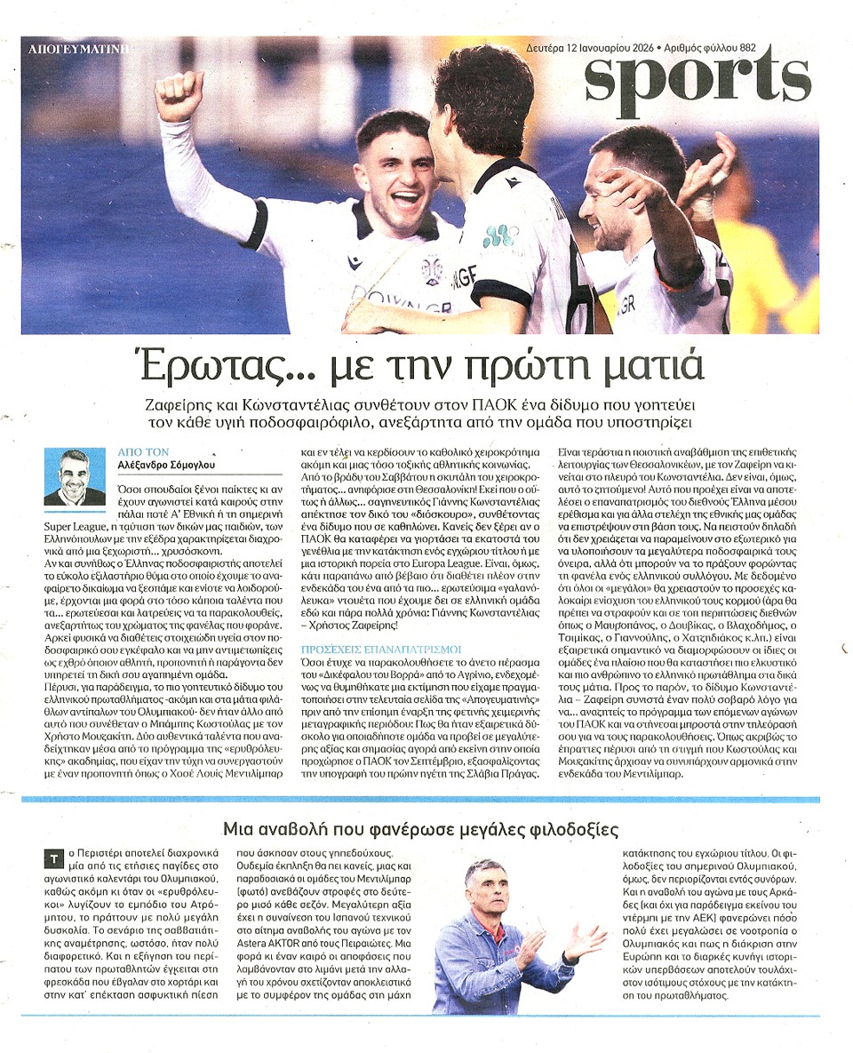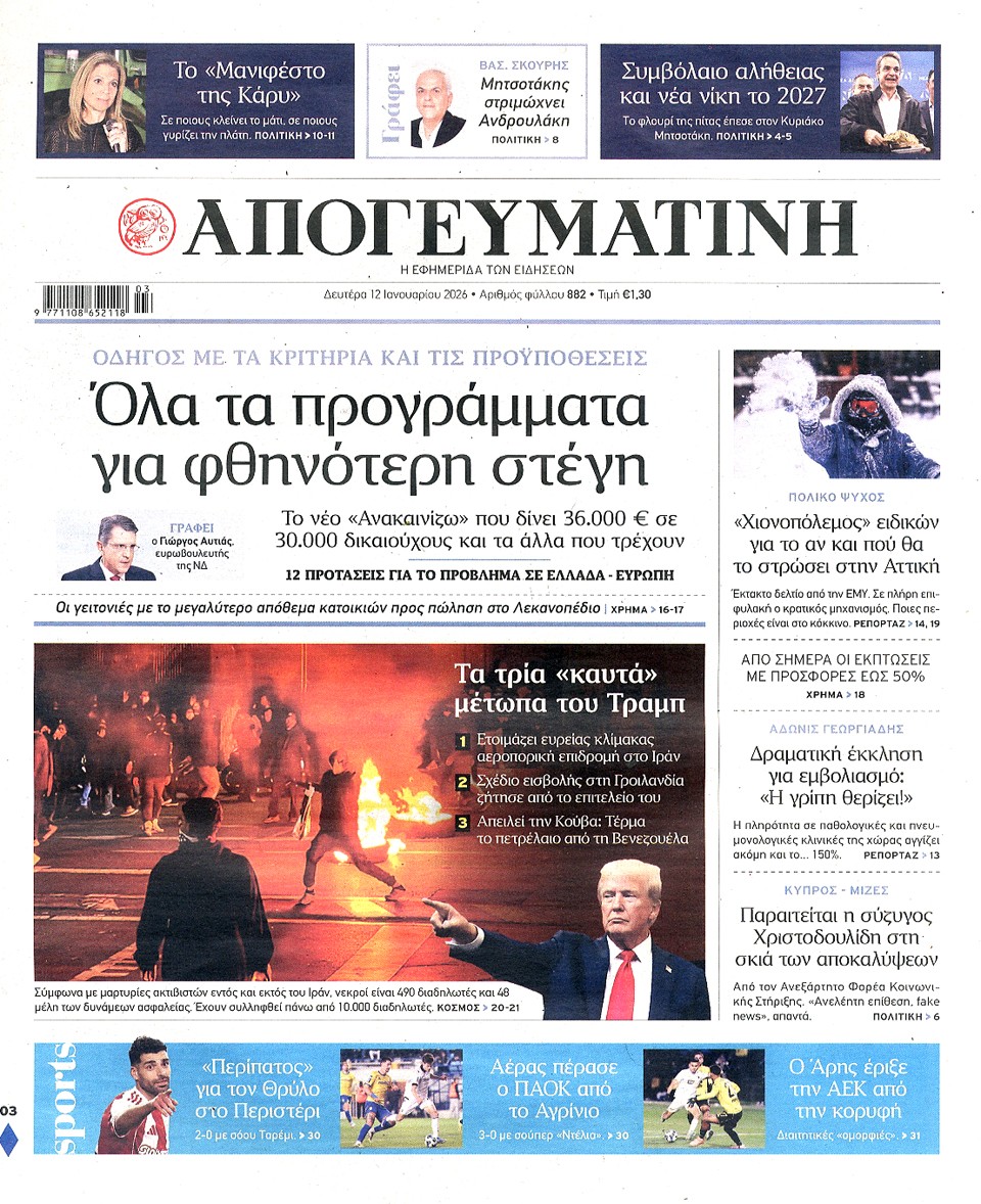 ΑΠΟΓΕΥΜΑΤΙΝΗ - 12 Ιανουαρίου 2026