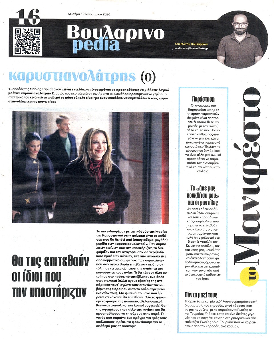 ΤΟ ΜΑΝΙΦΕΣΤΟ - 12 Ιανουαρίου 2026