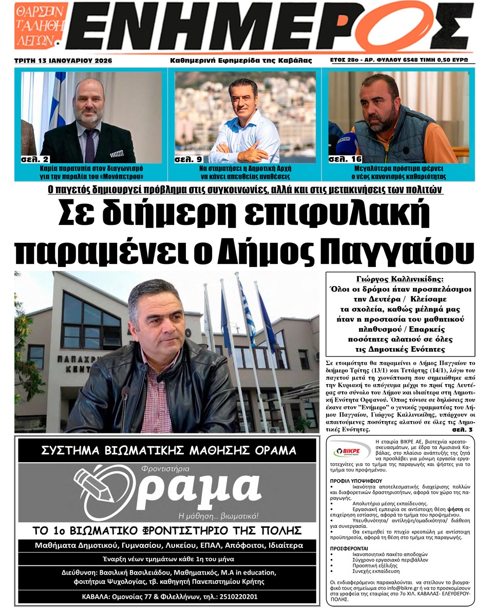 ΕΝΗΜΕΡΟΣ - 13 Ιανουαρίου 2026
