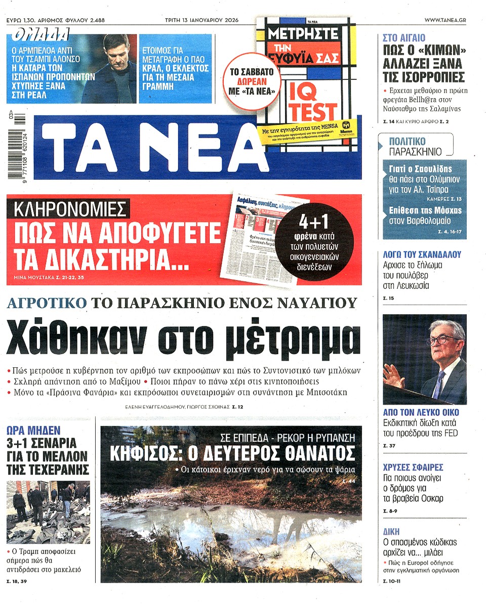 ΤΑ ΝΕΑ - 13 Ιανουαρίου 2026