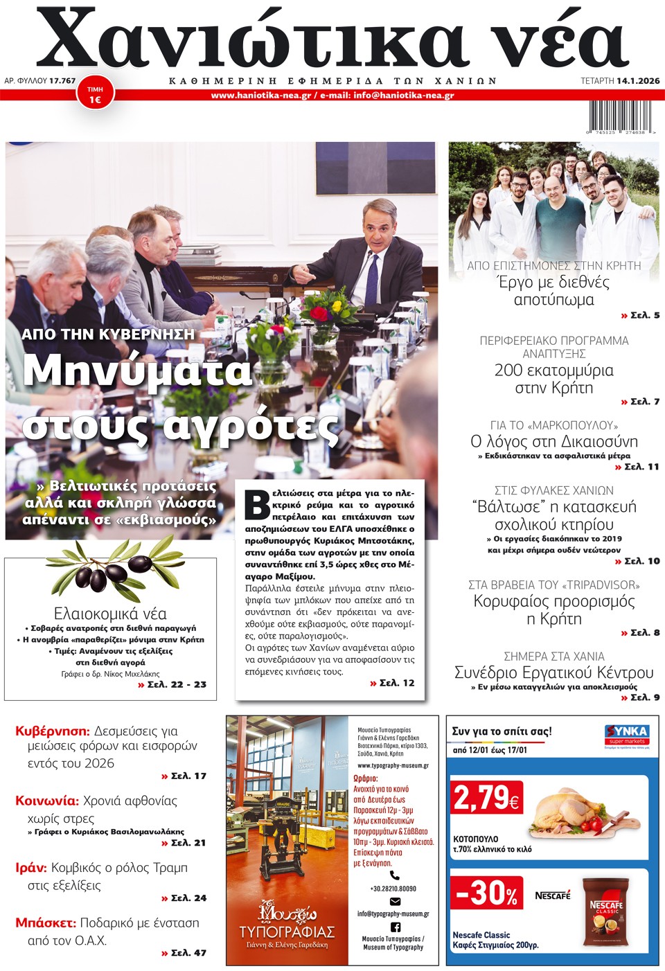 ΧΑΝΙΩΤΙΚΑ ΝΕΑ - 14 Ιανουαρίου 2026