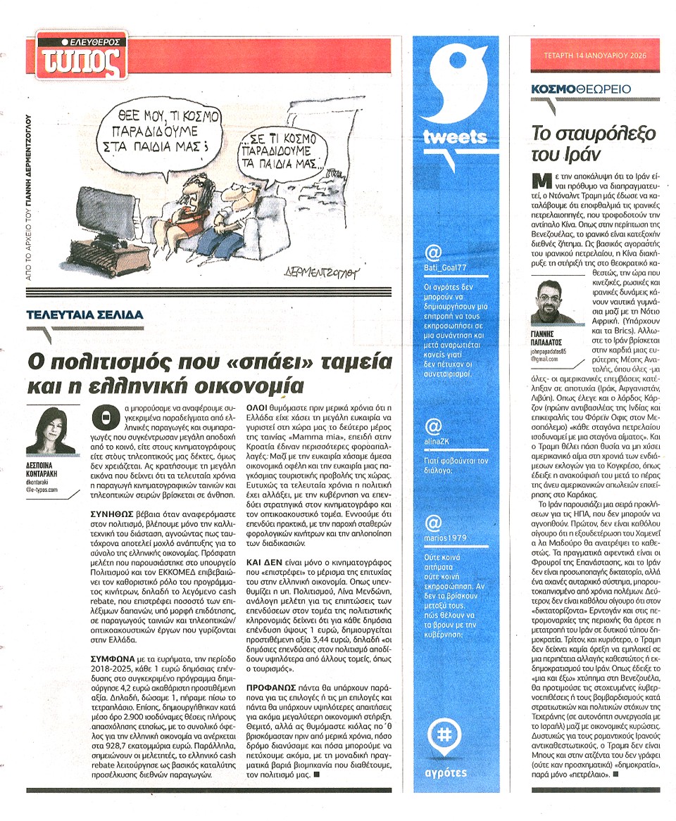 ΕΛΕΥΘΕΡΟΣ ΤΥΠΟΣ - 14 Ιανουαρίου 2026
