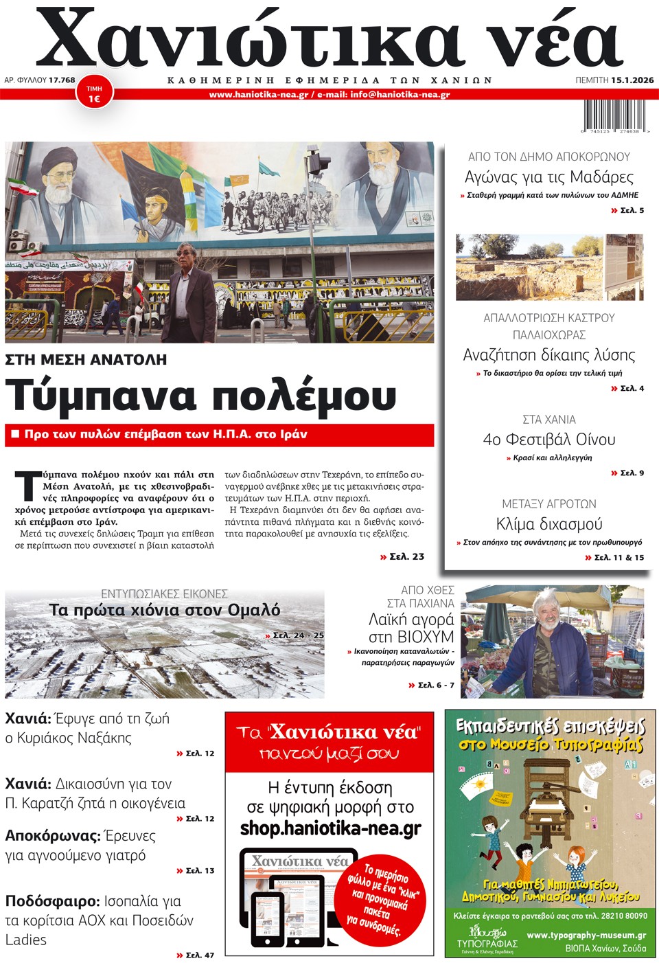 ΧΑΝΙΩΤΙΚΑ ΝΕΑ - 15 Ιανουαρίου 2026