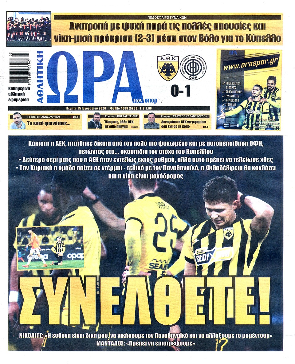 ΑΘΛΗΤΙΚΗ ΩΡΑ ΤΩΝ ΣΠΟΡ - 15 Ιανουαρίου 2026