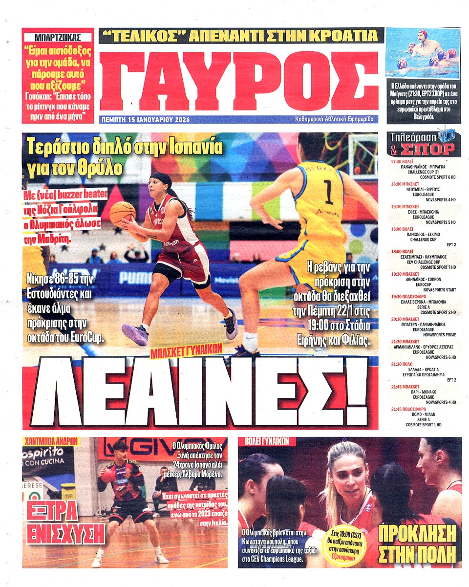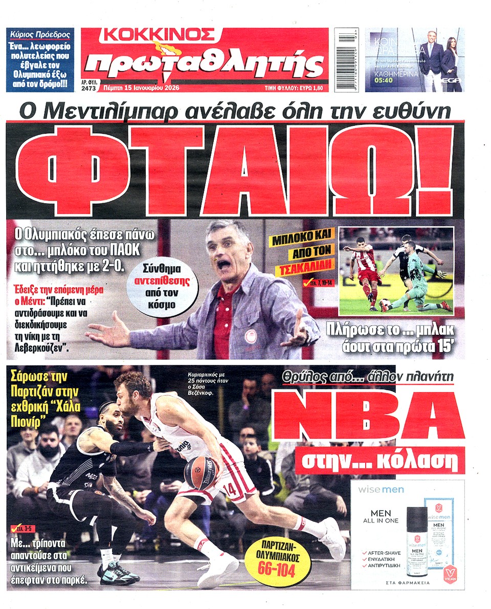 ΠΡΩΤΑΘΛΗΤΗΣ - 15 Ιανουαρίου 2026