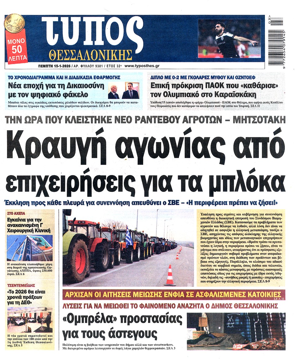 ΤΥΠΟΣ ΘΕΣΣΑΛΟΝΙΚΗΣ - 15 Ιανουαρίου 2026