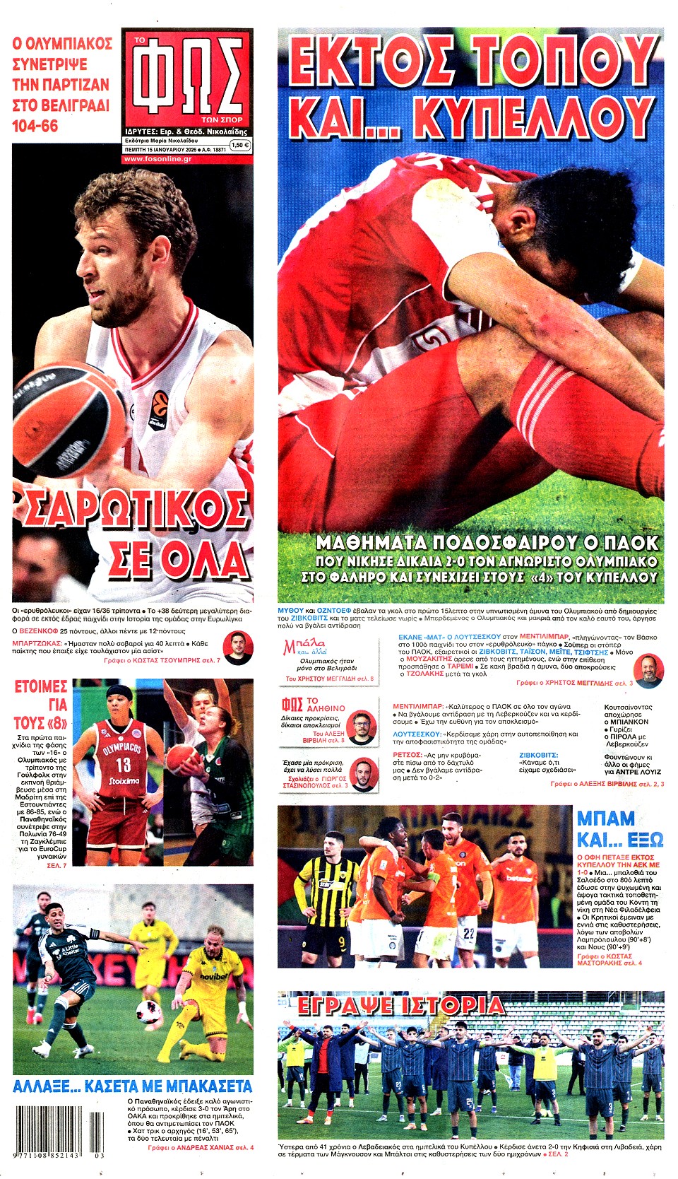 ΦΩΣ ΤΩΝ ΣΠΟΡ - 15 Ιανουαρίου 2026