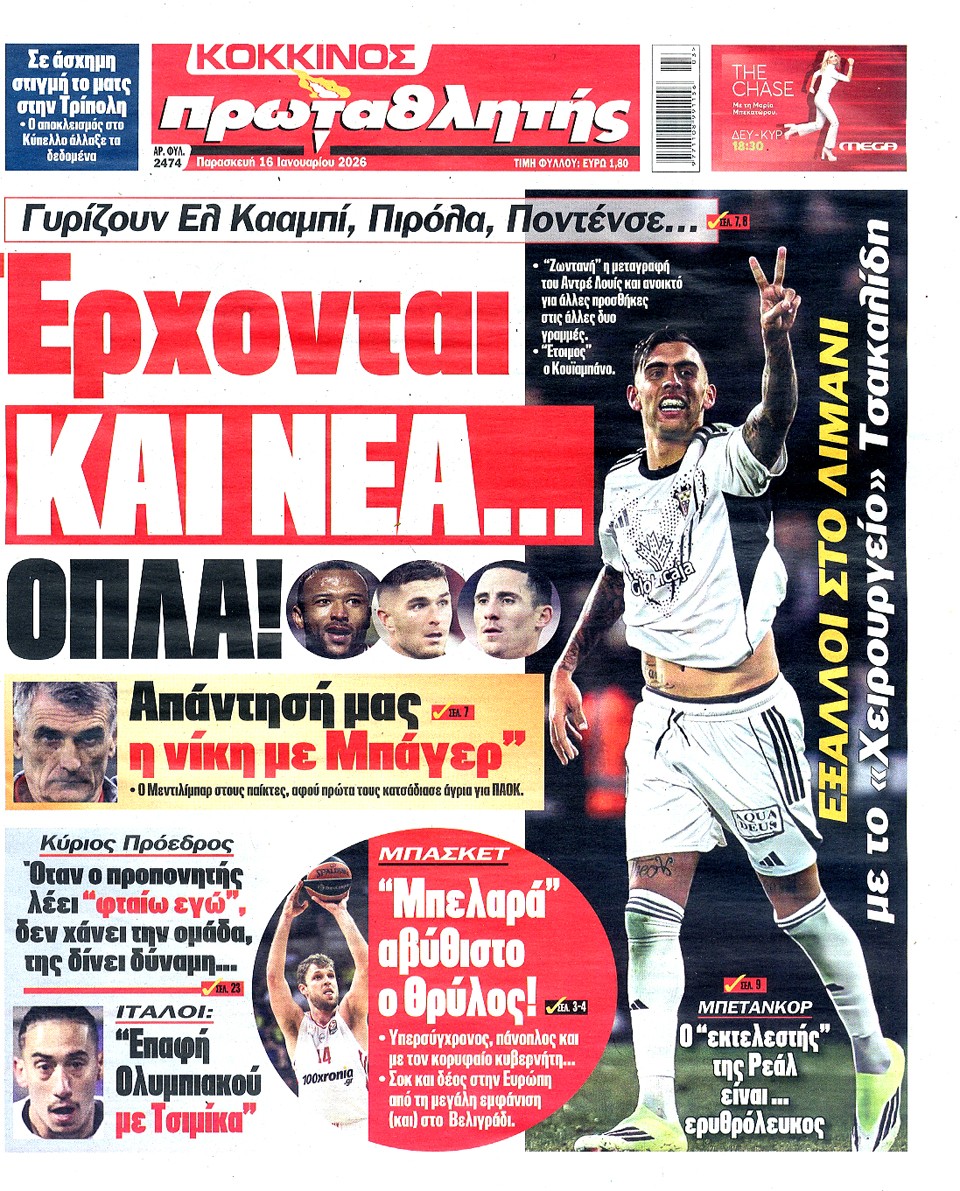ΠΡΩΤΑΘΛΗΤΗΣ - 16 Ιανουαρίου 2026