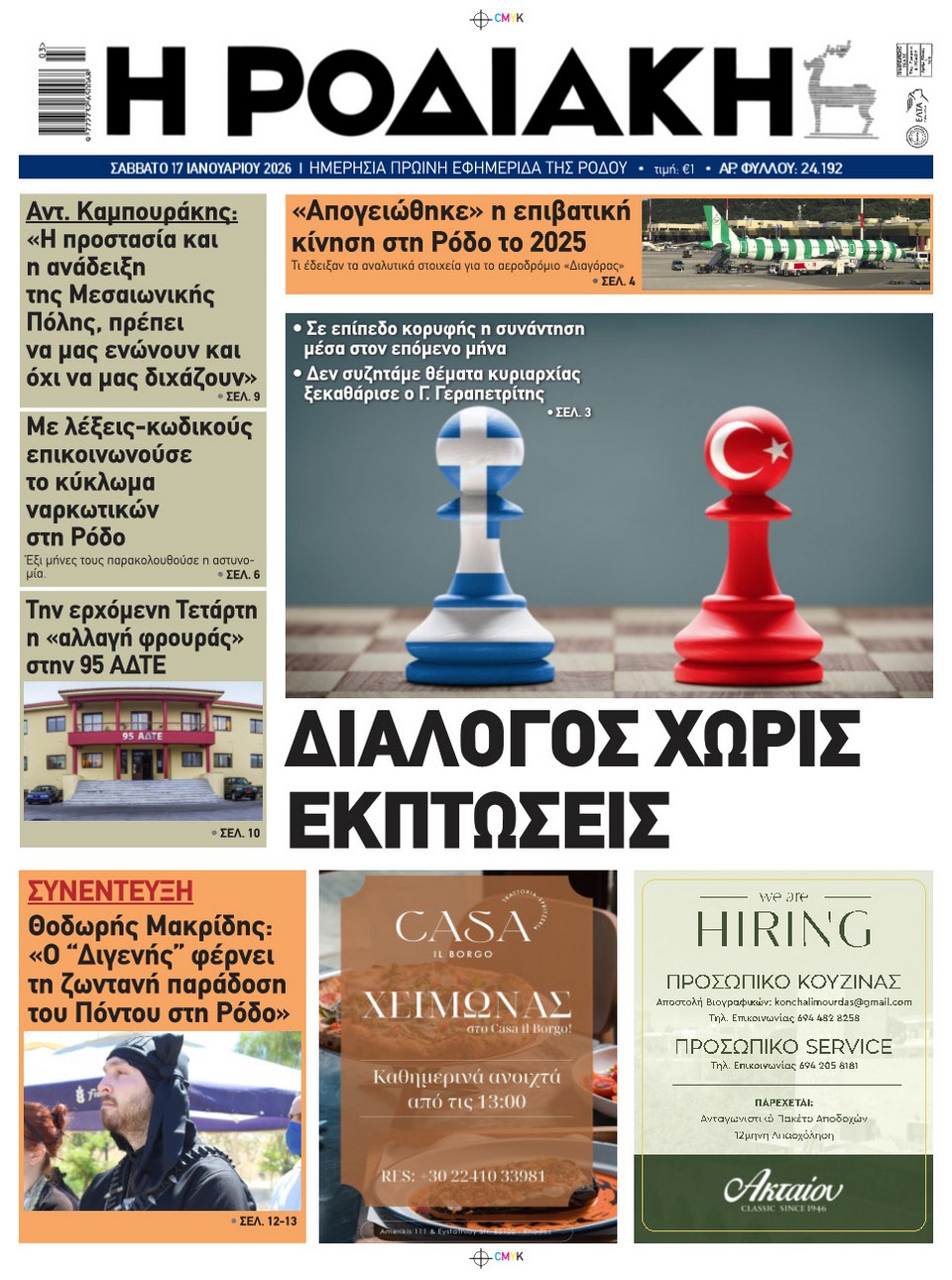 Η ΡΟΔΙΑΚΗ - 17 Ιανουαρίου 2026