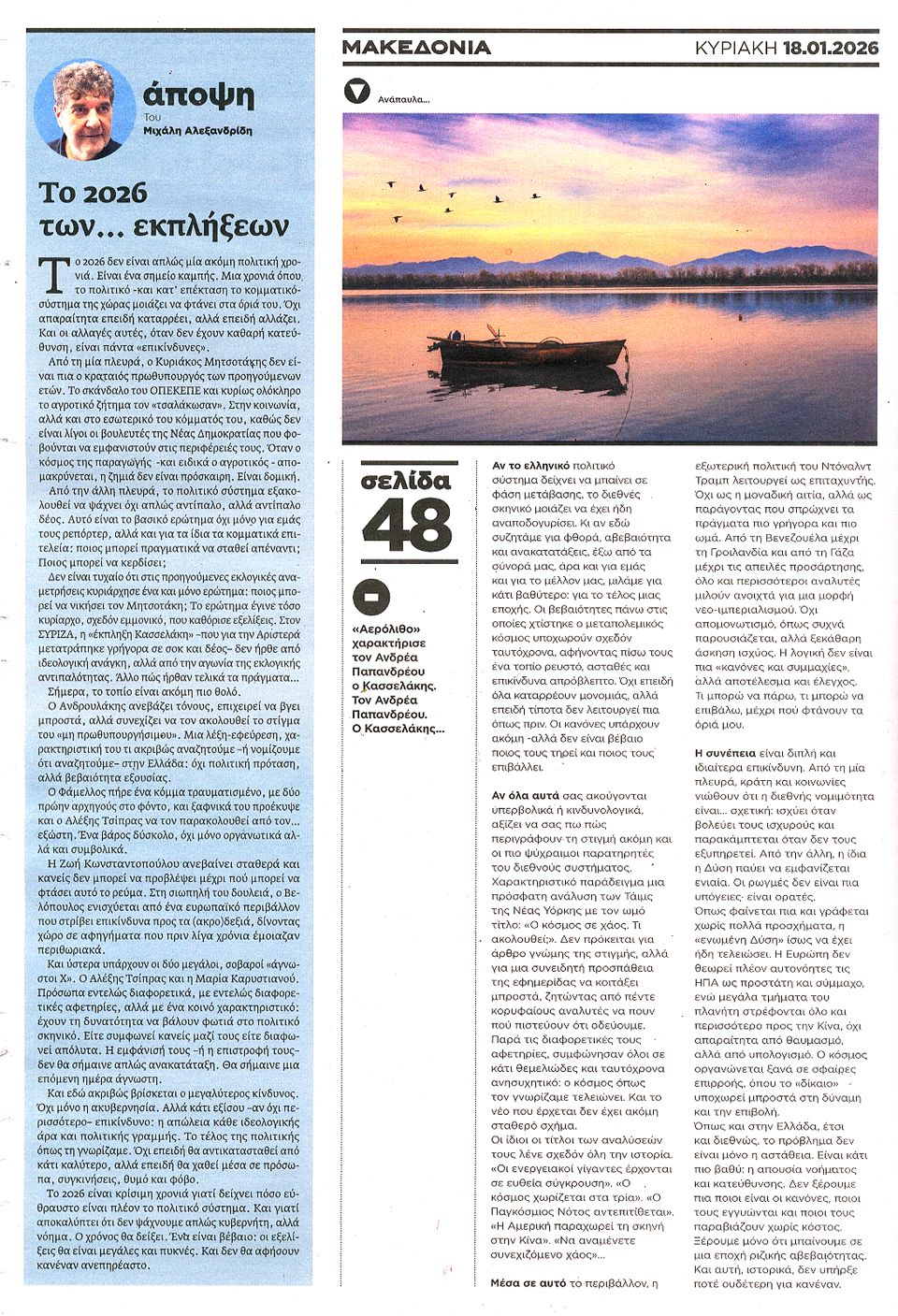 ΜΑΚΕΔΟΝΙΑ ΤΗΣ ΚΥΡΙΑΚΗΣ - 18 Ιανουαρίου 2026