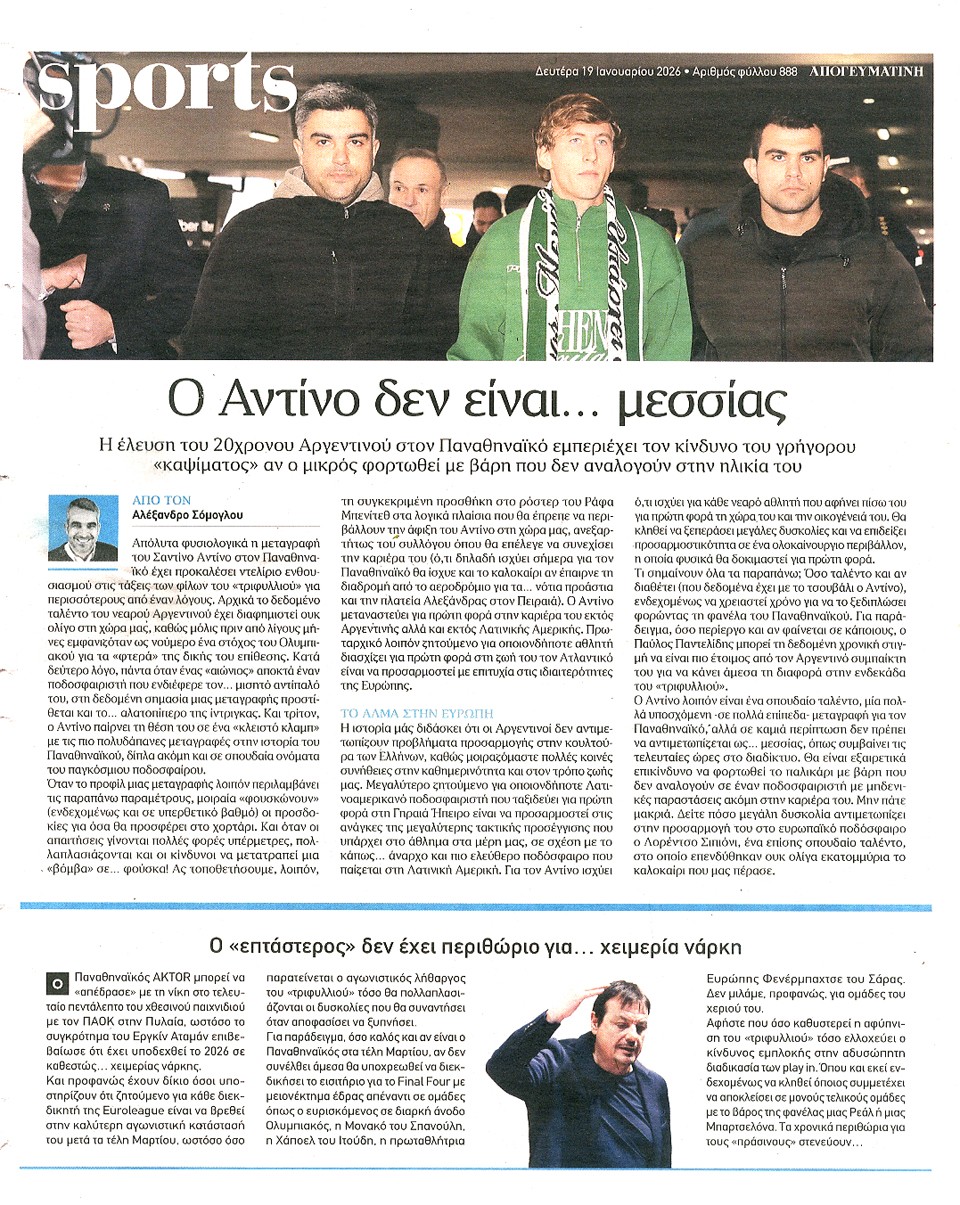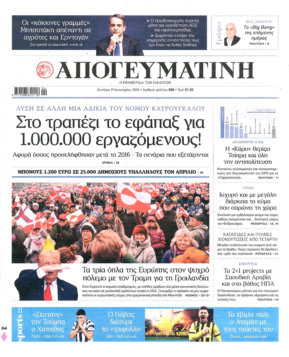 ΑΠΟΓΕΥΜΑΤΙΝΗ - 19 Ιανουαρίου 2026