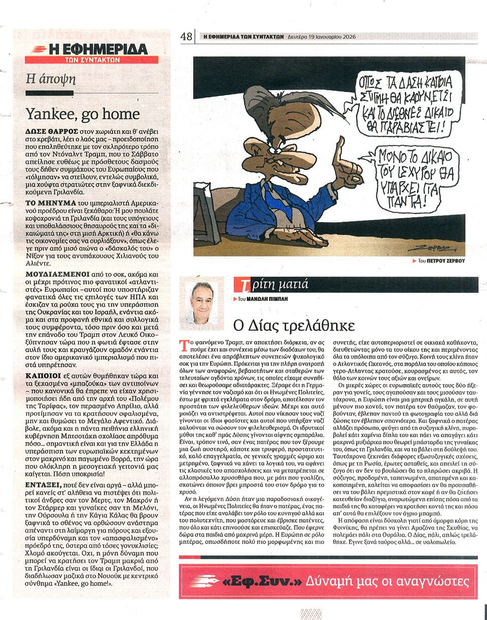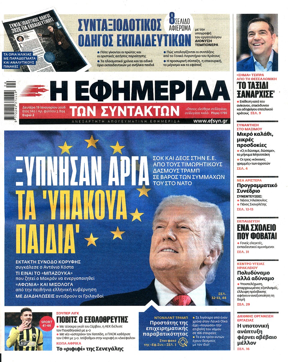 Η ΕΦΗΜΕΡΙΔΑ ΤΩΝ ΣΥΝΤΑΚΤΩΝ - 19 Ιανουαρίου 2026