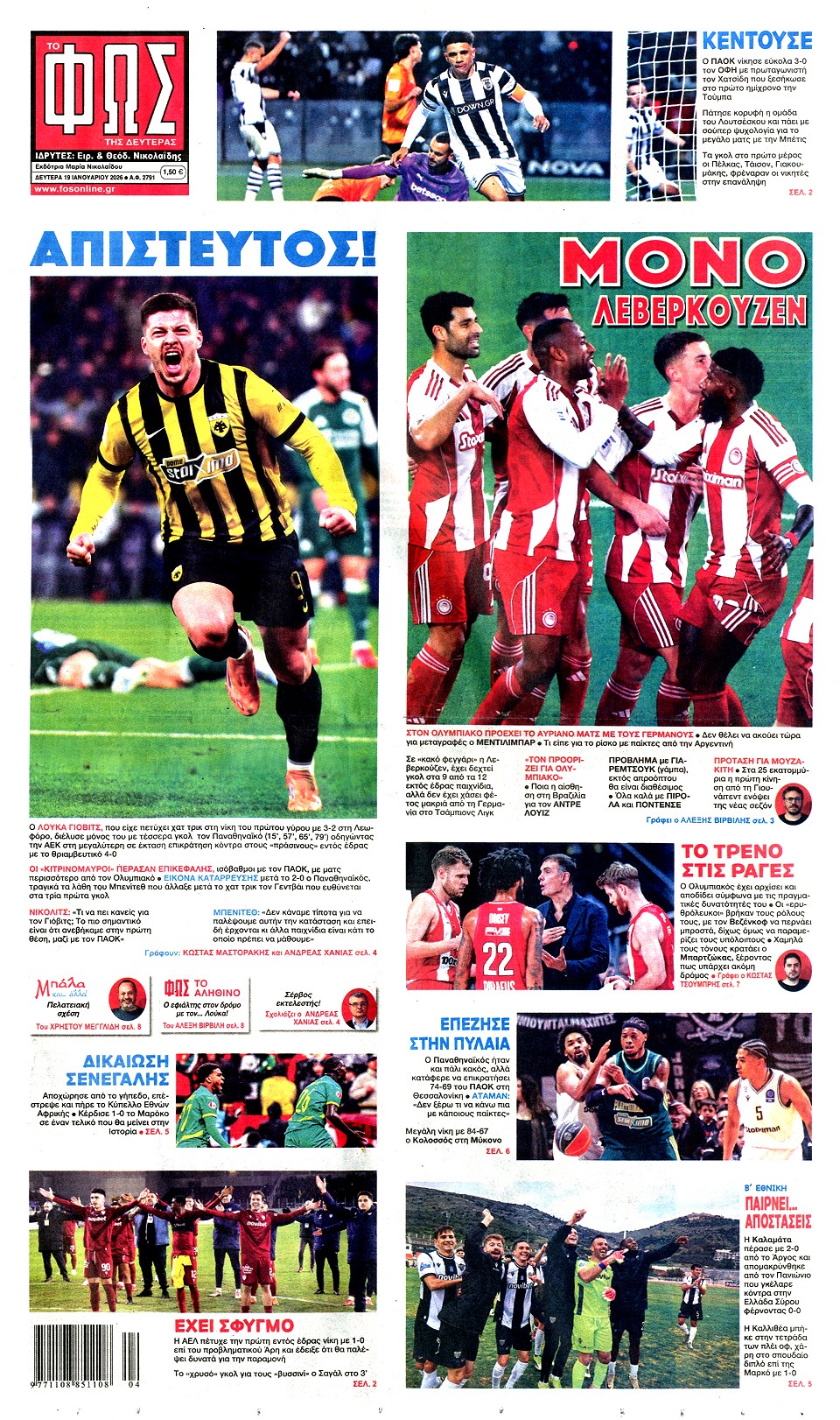 ΦΩΣ ΤΩΝ ΣΠΟΡ - 19 Ιανουαρίου 2026