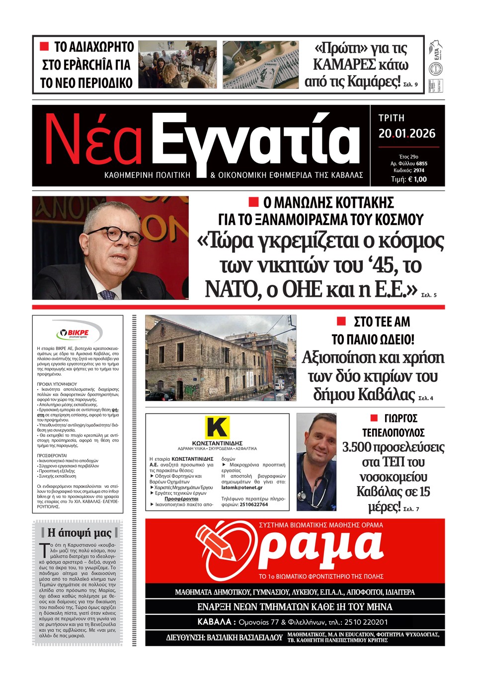 ΝΕΑ ΕΓΝΑΤΙΑ - 20 Ιανουαρίου 2026