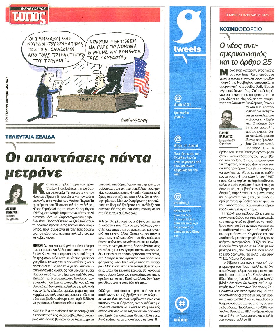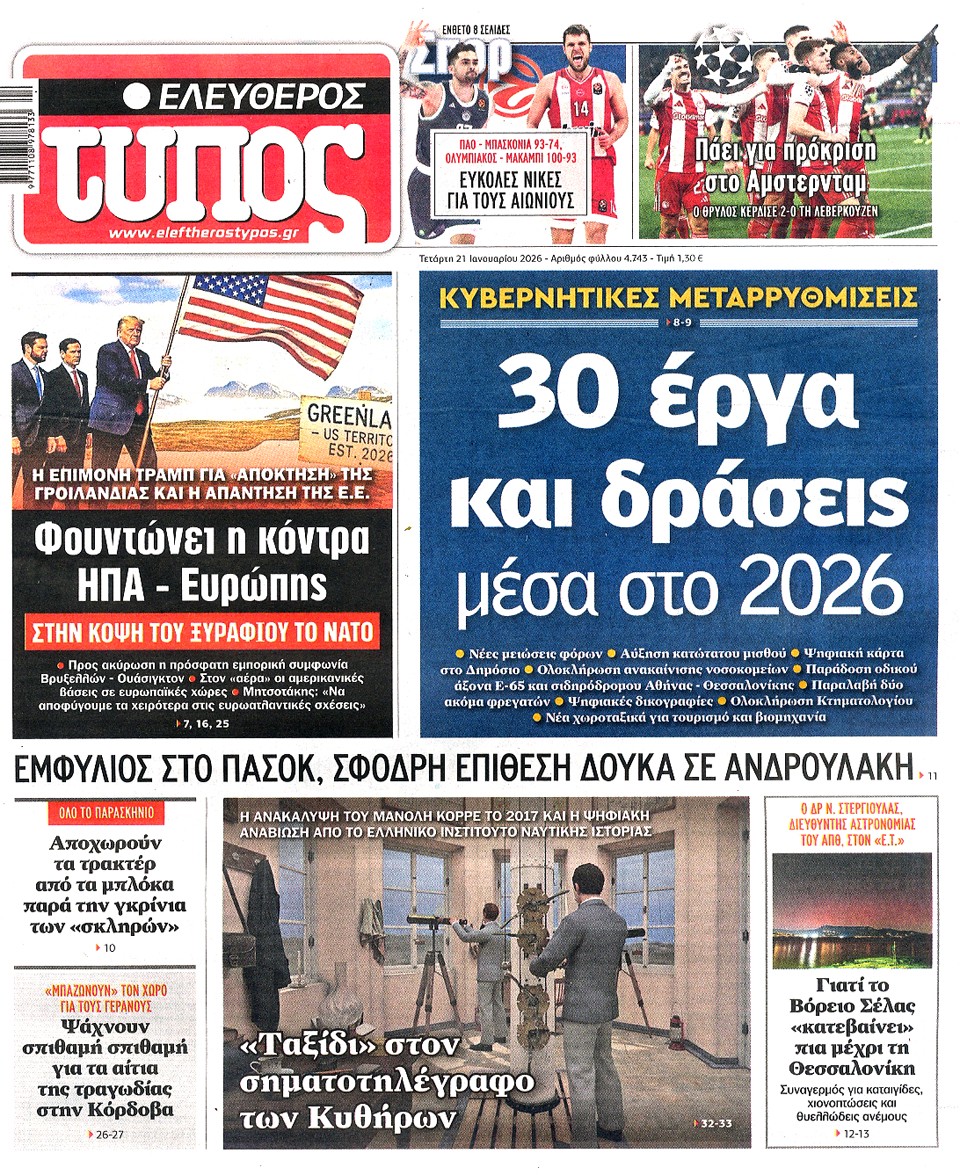 ΕΛΕΥΘΕΡΟΣ ΤΥΠΟΣ - 21 Ιανουαρίου 2026