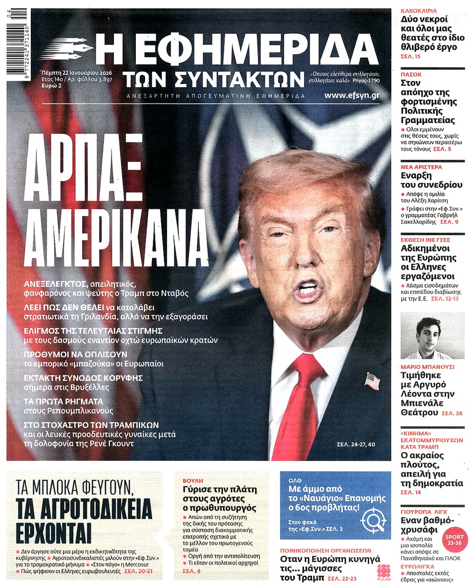 Η ΕΦΗΜΕΡΙΔΑ ΤΩΝ ΣΥΝΤΑΚΤΩΝ - 22 Ιανουαρίου 2026