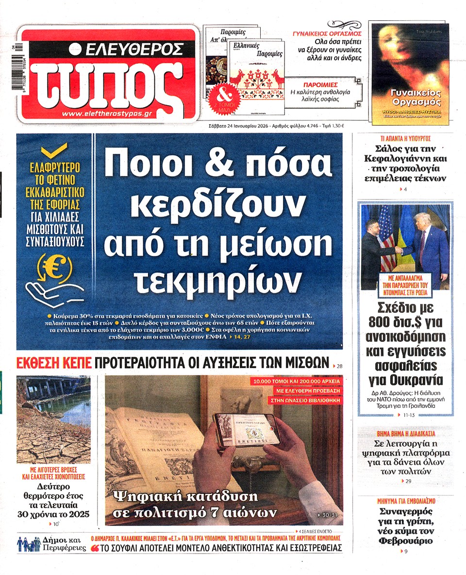 ΕΛΕΥΘΕΡΟΣ ΤΥΠΟΣ - 24 Ιανουαρίου 2026