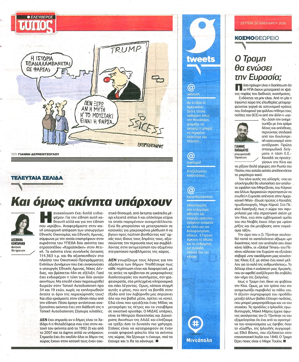 ΕΛΕΥΘΕΡΟΣ ΤΥΠΟΣ - 26 Ιανουαρίου 2026
