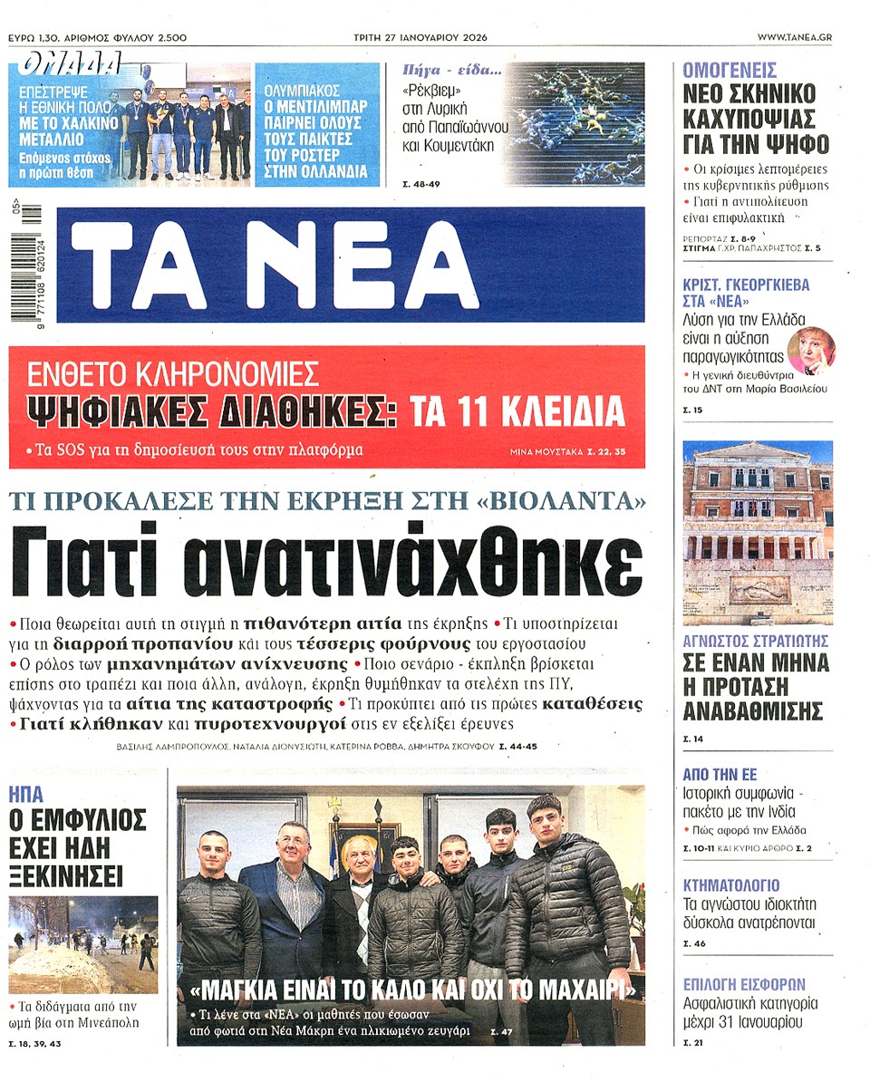 ΤΑ ΝΕΑ - 27 Ιανουαρίου 2026