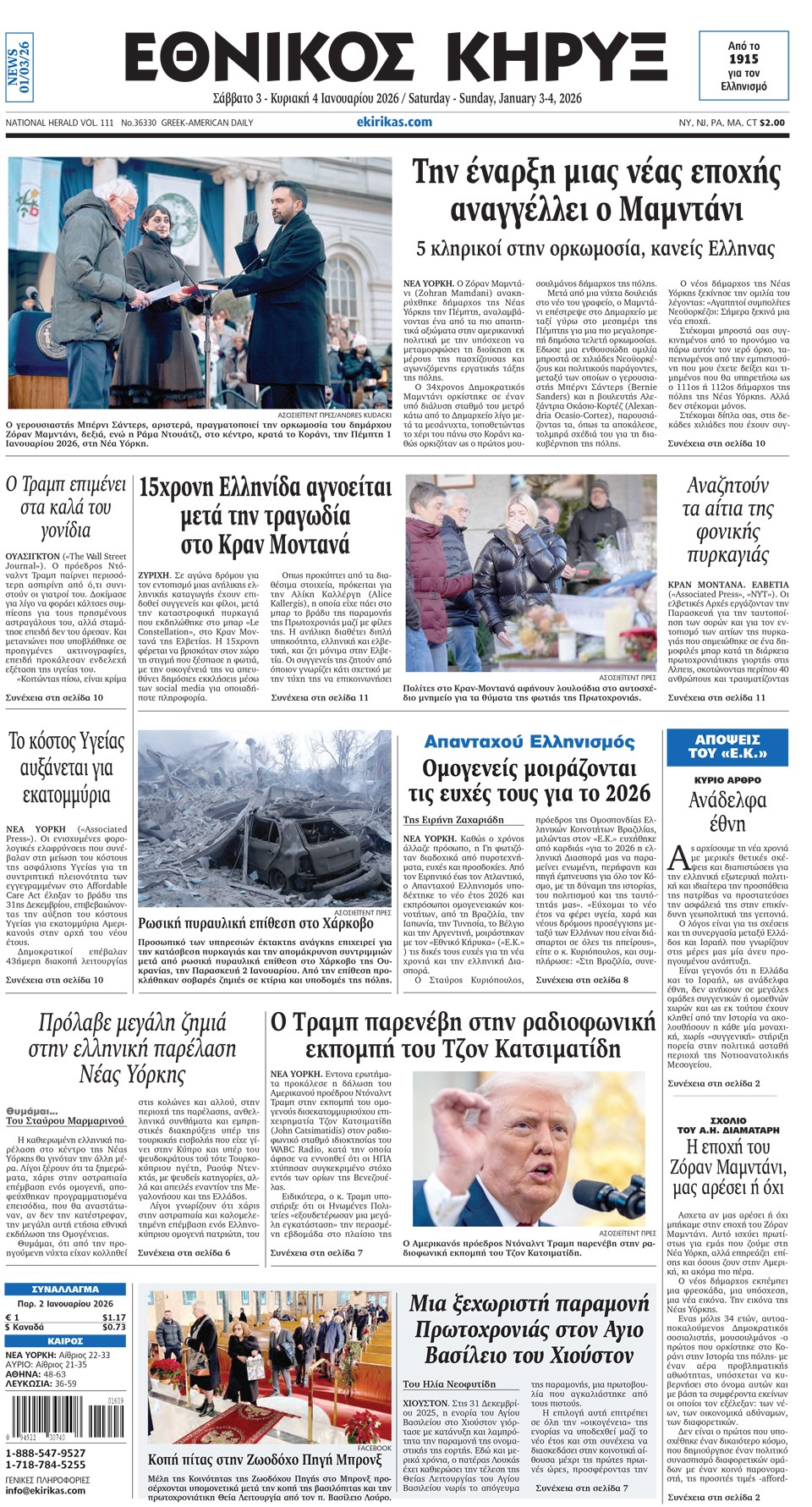 ΕΘΝΙΚΟΣ ΚΗΡΥΞ - 03 Ιανουαρίου 2026