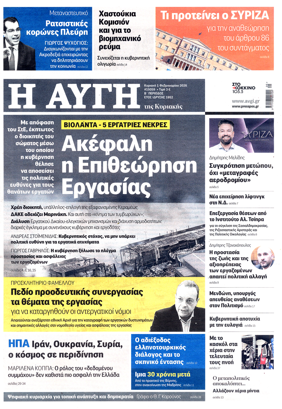 Η ΑΥΓΗ ΤΗΣ ΚΥΡΙΑΚΗΣ - 01 Φεβρουαρίου 2026