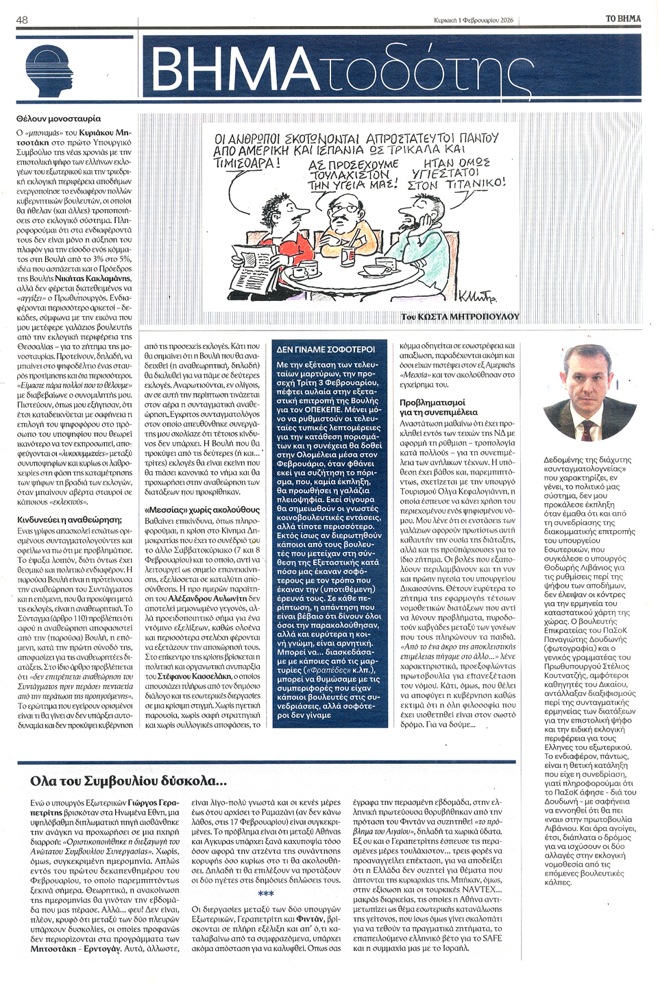 ΤΟ ΒΗΜΑ ΤΗΣ ΚΥΡΙΑΚΗΣ - 01 Φεβρουαρίου 2026
