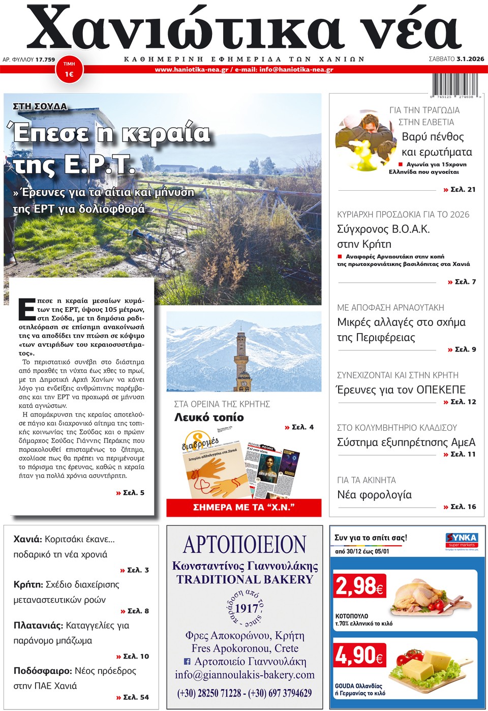 ΧΑΝΙΩΤΙΚΑ ΝΕΑ - 03 Ιανουαρίου 2026