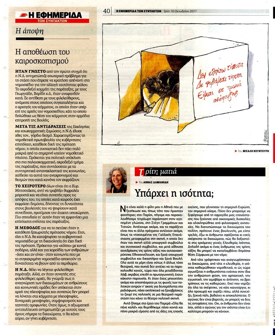 Η ΕΦΗΜΕΡΙΔΑ ΤΩΝ ΣΥΝΤΑΚΤΩΝ - 10 Οκτωβρίου 2017