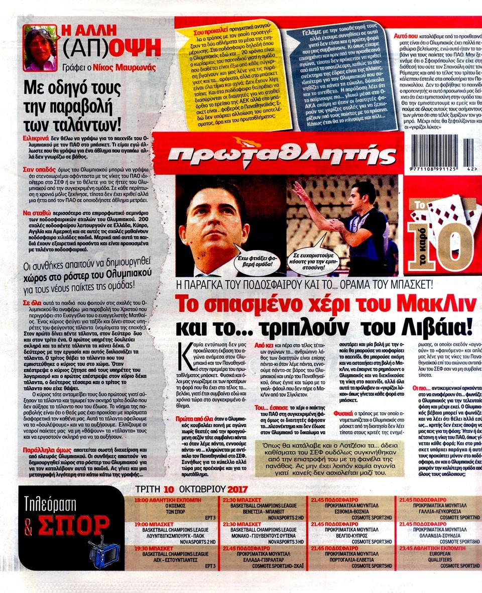ΠΡΩΤΑΘΛΗΤΗΣ - 10 Οκτωβρίου 2017