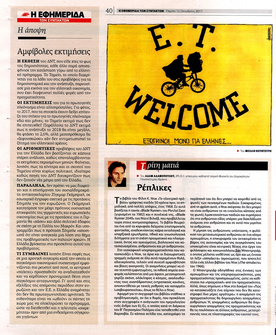 Η ΕΦΗΜΕΡΙΔΑ ΤΩΝ ΣΥΝΤΑΚΤΩΝ - 12 Οκτωβρίου 2017
