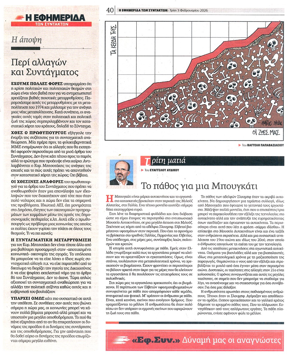 Η ΕΦΗΜΕΡΙΔΑ ΤΩΝ ΣΥΝΤΑΚΤΩΝ - 03 Φεβρουαρίου 2026
