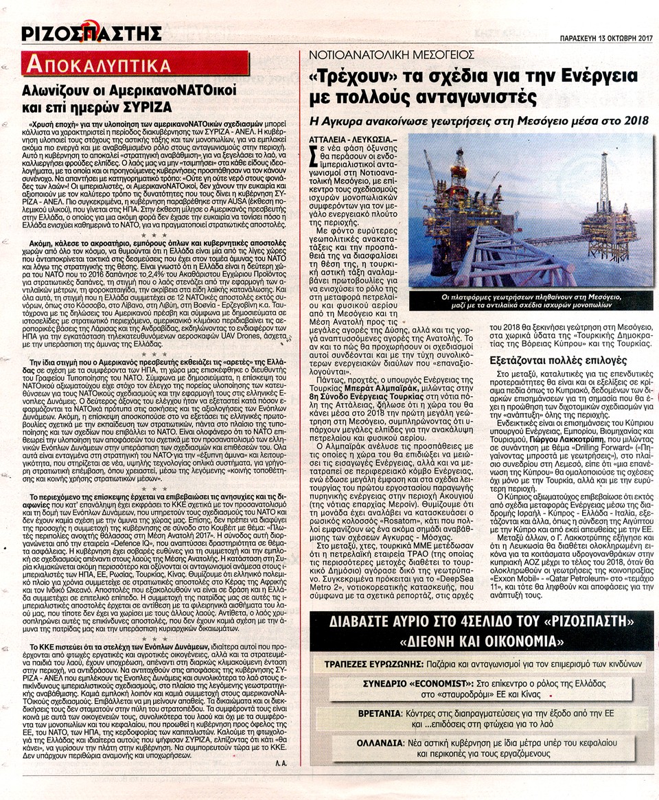 ΡΙΖΟΣΠΑΣΤΗΣ - 13 Οκτωβρίου 2017