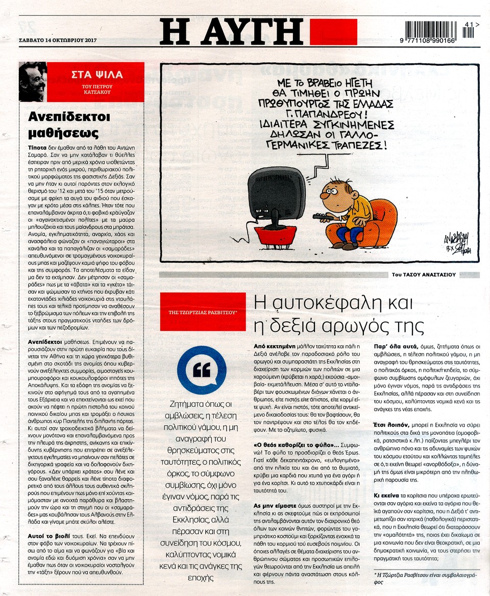 Η ΑΥΓΗ - 14 Οκτωβρίου 2017