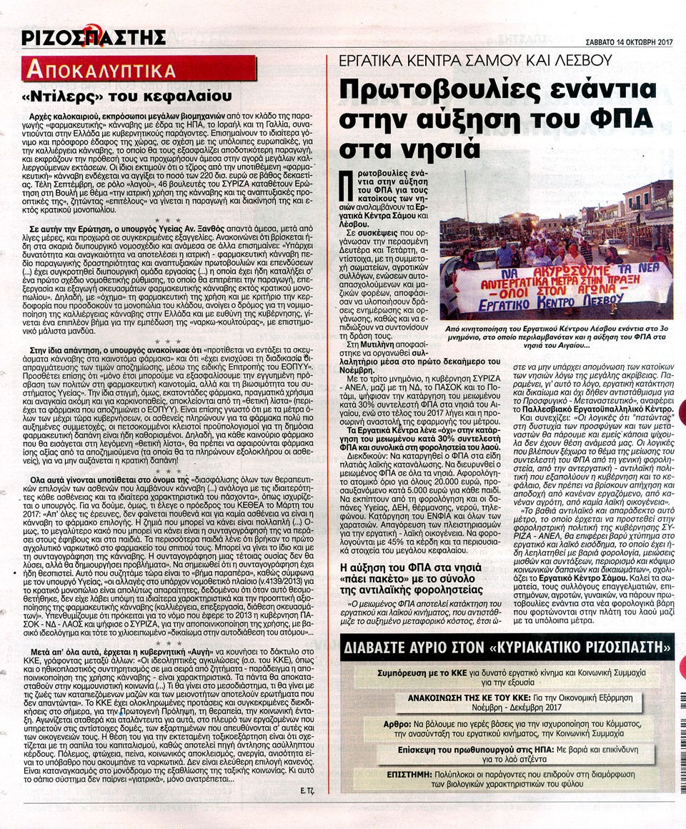 ΡΙΖΟΣΠΑΣΤΗΣ - 14 Οκτωβρίου 2017