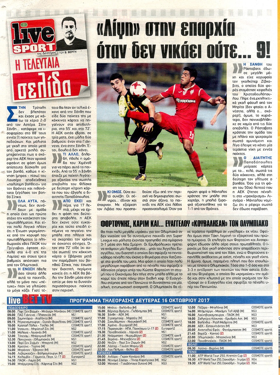 LIVE SPORT - 16 Οκτωβρίου 2017