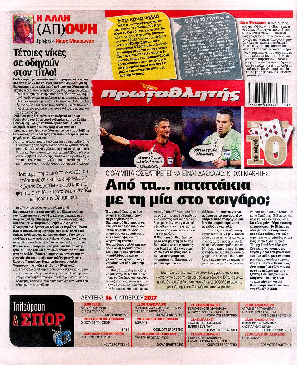 ΠΡΩΤΑΘΛΗΤΗΣ - 16 Οκτωβρίου 2017