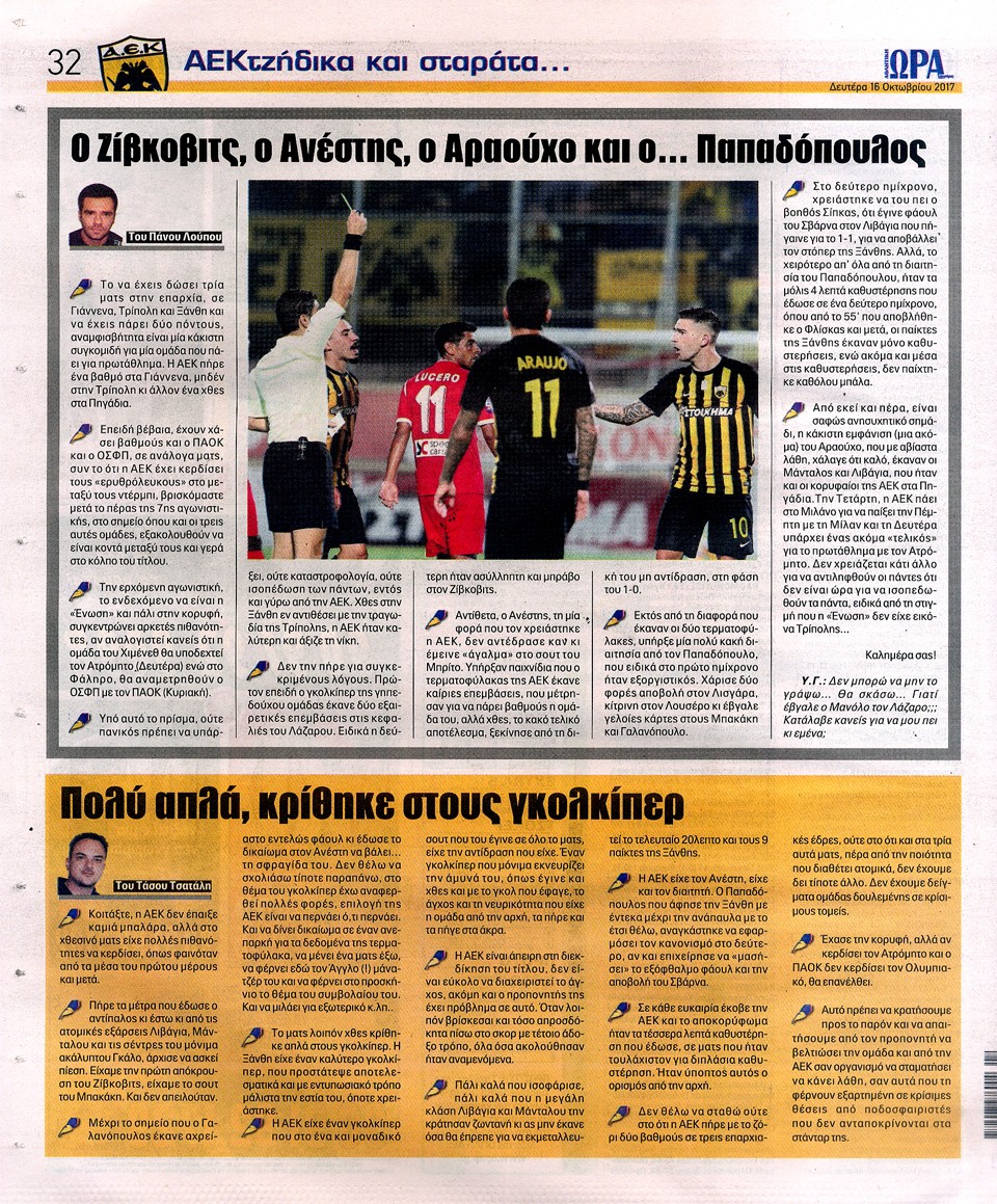 ΑΘΛΗΤΙΚΗ ΩΡΑ ΤΩΝ ΣΠΟΡ - 16 Οκτωβρίου 2017