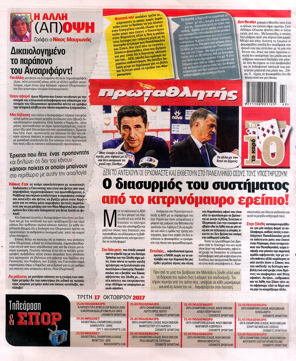 ΠΡΩΤΑΘΛΗΤΗΣ - 17 Οκτωβρίου 2017