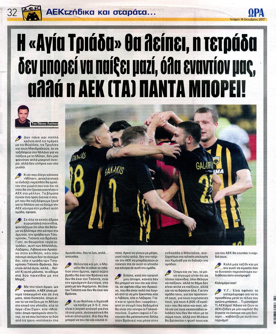 ΑΘΛΗΤΙΚΗ ΩΡΑ ΤΩΝ ΣΠΟΡ - 18 Οκτωβρίου 2017