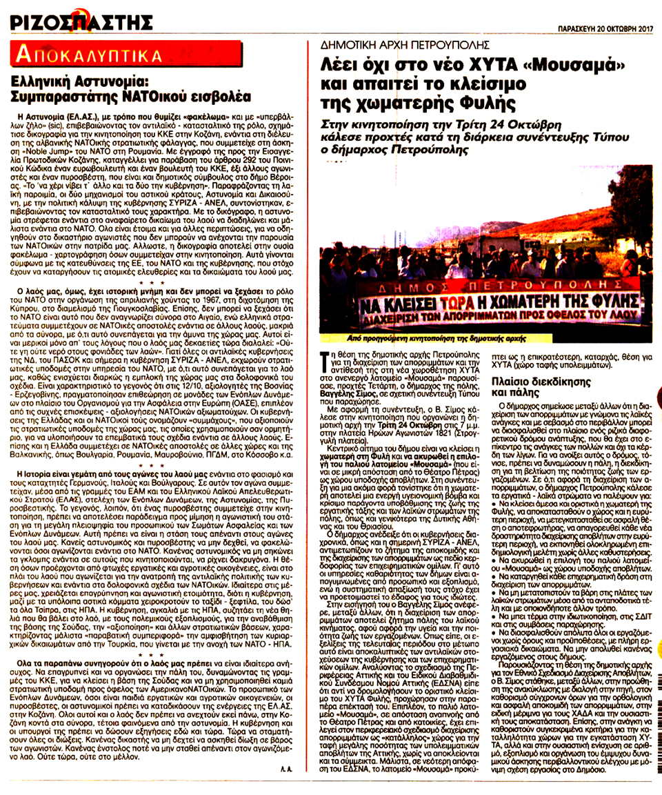 ΡΙΖΟΣΠΑΣΤΗΣ - 20 Οκτωβρίου 2017