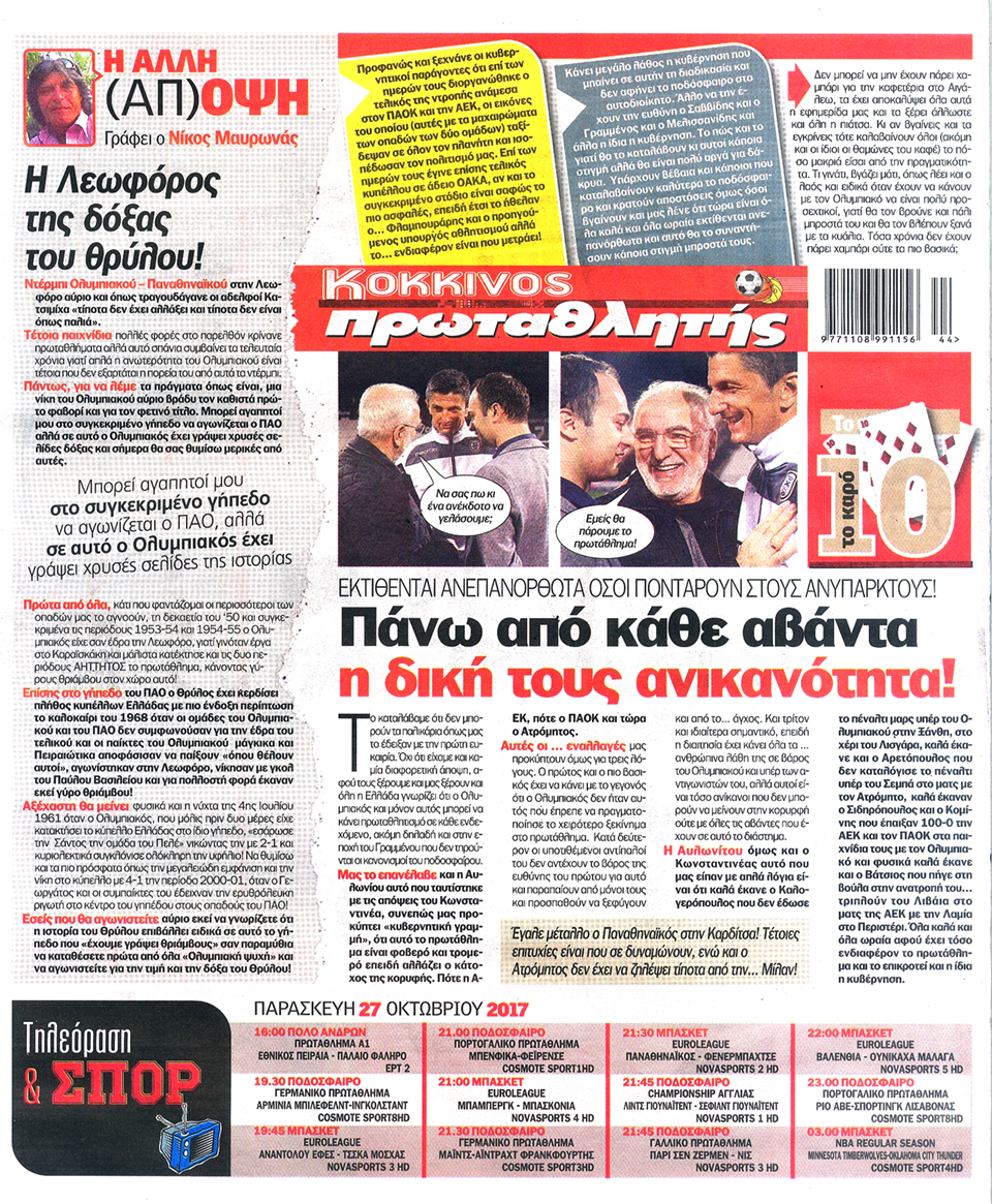ΠΡΩΤΑΘΛΗΤΗΣ - 27 Οκτωβρίου 2017