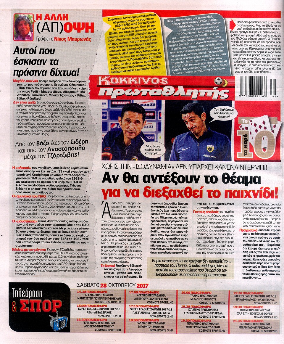 ΠΡΩΤΑΘΛΗΤΗΣ - 28 Οκτωβρίου 2017
