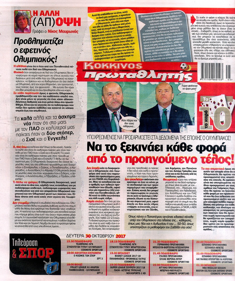 ΠΡΩΤΑΘΛΗΤΗΣ - 30 Οκτωβρίου 2017