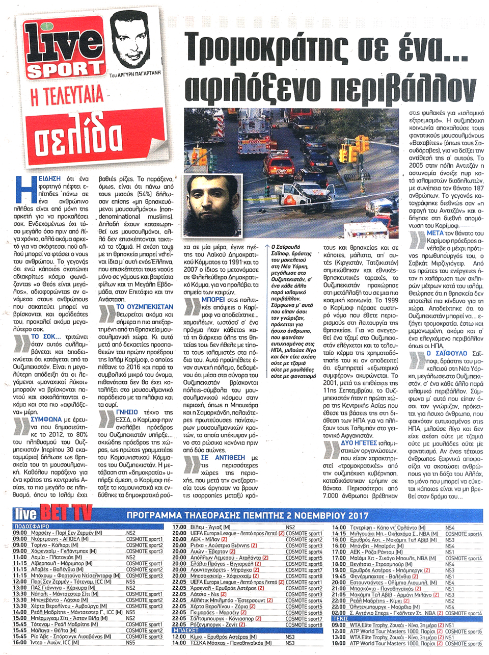 LIVE SPORT - 2 Νοεμβρίου 2017