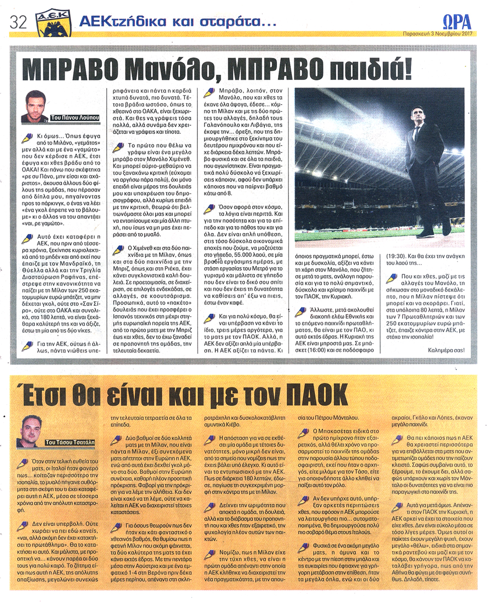 ΑΘΛΗΤΙΚΗ ΩΡΑ ΤΩΝ ΣΠΟΡ - 3 Νοεμβρίου 2017