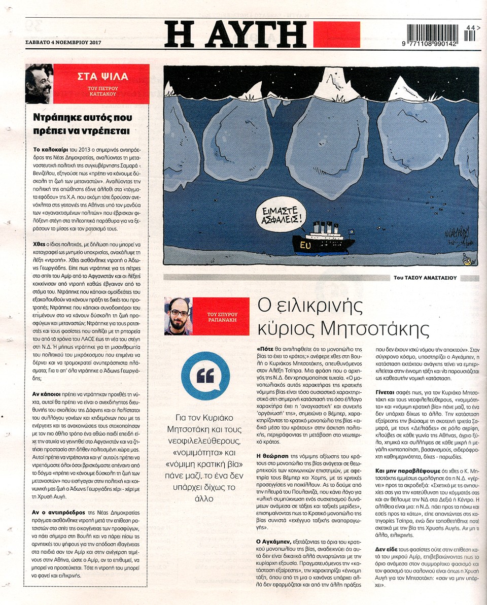 Η ΑΥΓΗ - 4 Νοεμβρίου 2017