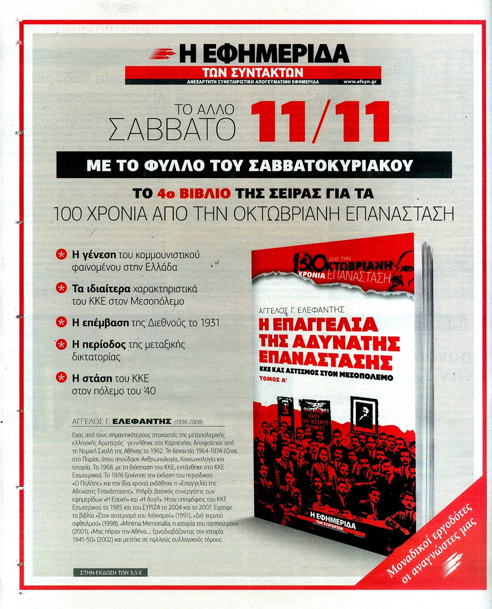 Η ΕΦΗΜΕΡΙΔΑ ΤΩΝ ΣΥΝΤΑΚΤΩΝ - 4 Νοεμβρίου 2017